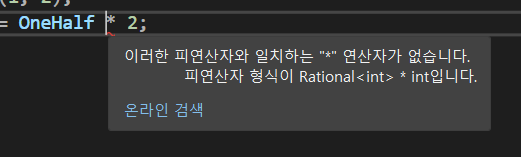 IDE가 제공하는 에러 내용을 보면 일치하는 연산자를 찾지 못한다고 나온다.