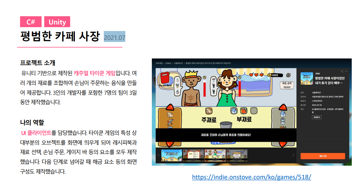 - 따로 적을까 고민했지만 결국 포트폴리오의 일부라는 생각이 들어 함께 적기로 했다