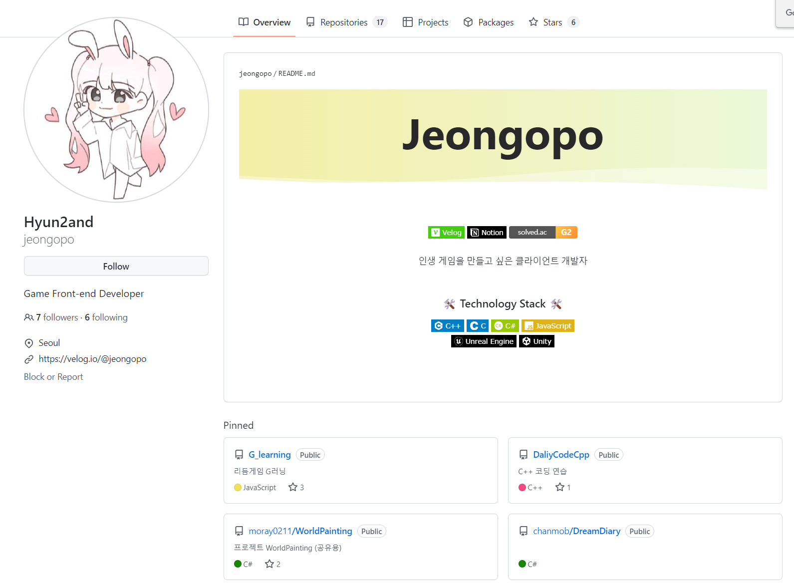 - 나의 깃허브는 그안에 코드는 정말 귀엽지만, 겉보기에 멀끔해보이려고 애썼다