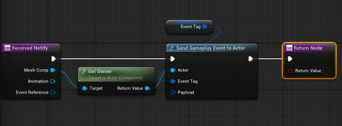 End Ability๋ฅผ ํธ์ถํฉ๋๋ค.Event Activate Ability(ํ์ฑํ ์์)Commit Ability(๋น์ฉ/์ฟจ๋ค์ด ์ ์ฉ)Ability Task: Play Montage and Wait for Event(๋ชฝํ์ฃผ ์ฌ์ ์์)