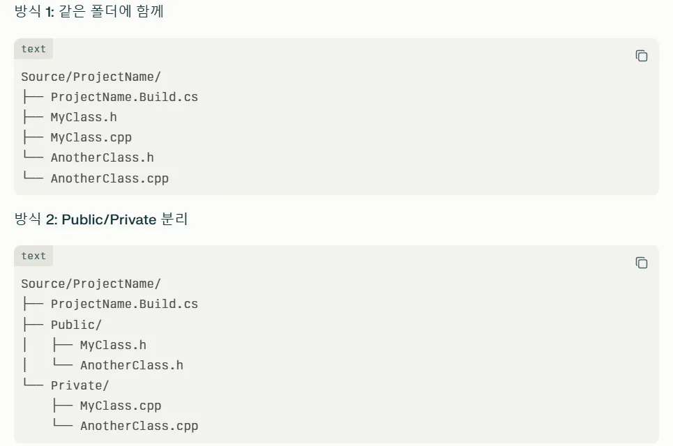 - Public/Private ๊ตฌ์กฐ๋ฅผ ๋ง๋ค์ด๋๋ฉด, ์ธ๋ฆฌ์ผ ์๋ํฐ์์ ์ C++ ํด๋์ค๋ฅผ ์์ฑํ ๋ ์๋์ผ๋ก ํค๋๋ Public์, cpp๋ Private์ ์์ฑ๋ฉ๋๋ค.