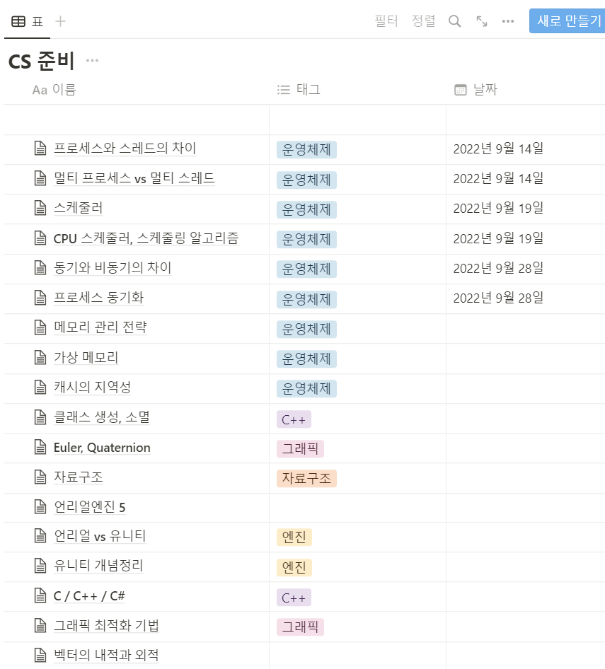 - 기본적으로 친구와 스터디를 하면서 공부했던 운영체제들을 문서로 정리했었다