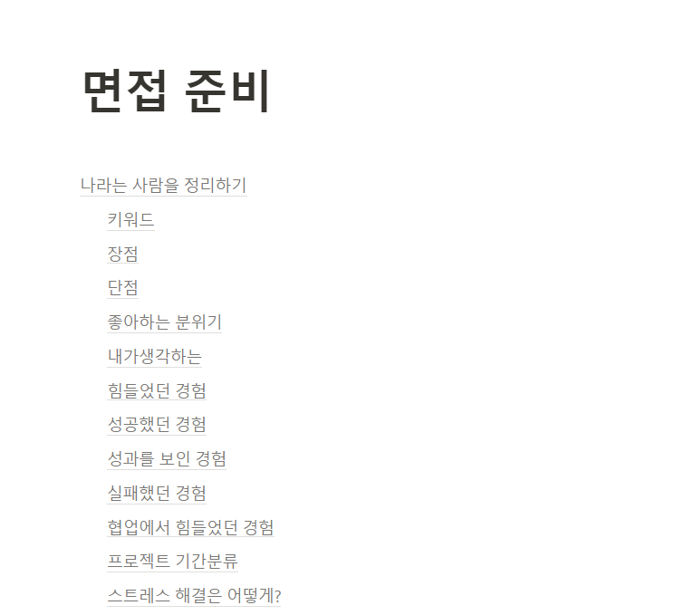 실제 노션에 적었던 키워드들. 이런 식으로 차라리 나를 정리해야한다
